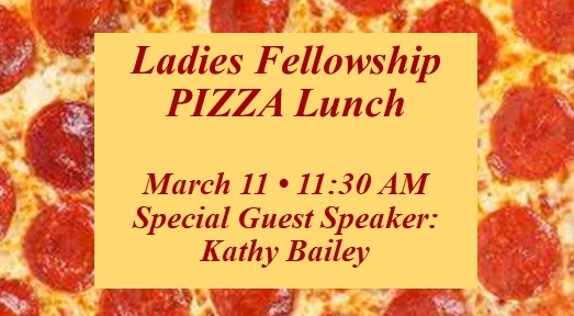 Please sign up in the foyer to be included in the pizza count and also indicate whether you will bring a salad or dessert. Tea and lemonade will be provided.
